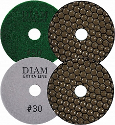 Алмазные гибкие шлифовальные круги Diam ExtraLine Dry (Диам ЭкстраЛайн Драй) – агшк черепашки на липучке для сухой шлифовки и полировки поверхностей всех видов натурального и искусственного камня, выпускаются зернистостью 30, 50, 100, 200, 400, 800, 1500, 3000 меш и BUFF (финишная обработка). Применяются на углошлифовальных машинах (ушм, болгарках).