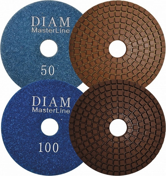 Алмазные гибкие шлифовальные круги Diam MasterLine Wet (Диам МастерЛайн Вет) – агшк черепашки на липучке для мокрой шлифовки и полировки поверхностей всех видов натурального и искусственного камня, выпускаются зернистостью 50, 100, 200, 400, 800, 1500, 3000 меш и BUFF (финишная обработка). Невысокая стоимость позволяет использовать как при работе на камнеобрабатывающем производстве, так и на небольших объектах, монтаже изделий. Применяются на углошлифовальных машинах (ушм, болгарках).
