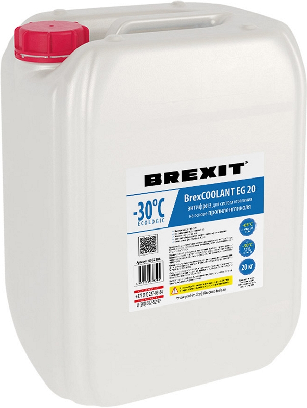 Антифриз на основе пропиленгликоля для систем отопления, кондиционирования Brexit BrexCoolant EG 20, 20 кг (Брекзит БрекзКулант ЕГ 20, 20 кг) предназначен для использования в системах отопления закрытого и открытого типа (домов, стадионов, производственных помещений), кондиционирования и холодильных установок.