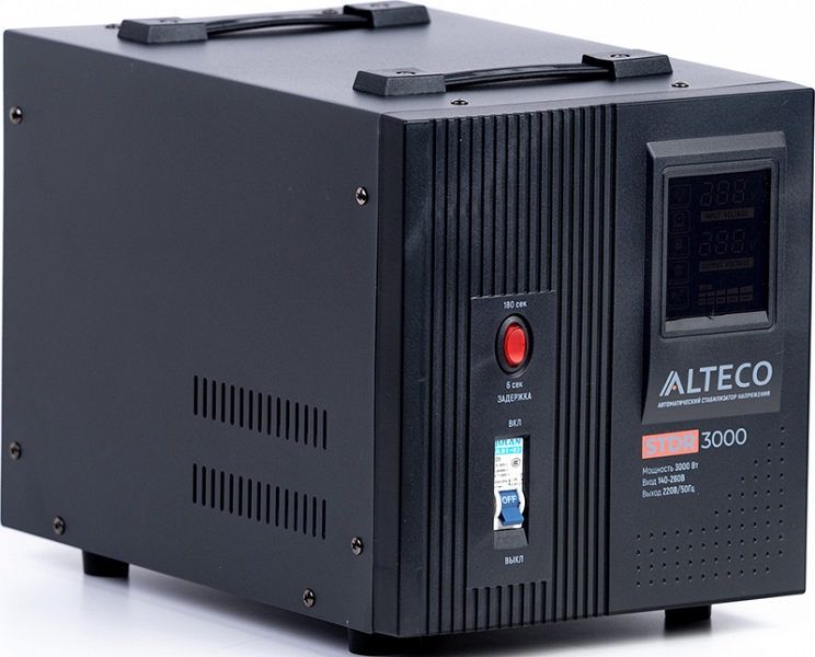 Автоматический cтабилизатор напряжения Alteco STDR 3000 (Альтеко СТДР 3000) предназначен для обеспечения стабильным напряжением подключенных к нему устройств. Широко используется в бытовых и промышленных сферах для защиты техники от аварийных скачков электроэнергии.