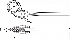 - Зубья на головке цепного ключа расположены с двух сторон для работы по типу трещотки