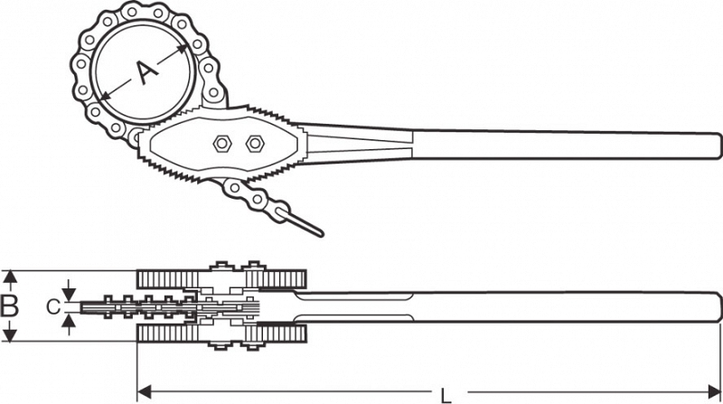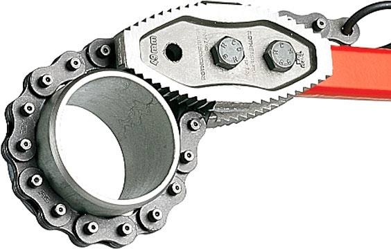 - Надежная и прочная цепь из закаленной стали обеспечивает надежный и быстрый захват трубы
