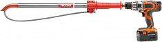 - Выдвижная конструкция с дополнительной длиной спирали, необходимой для устранения засоров, находящихся далеко в трубопроводах
