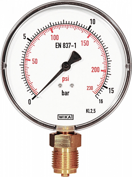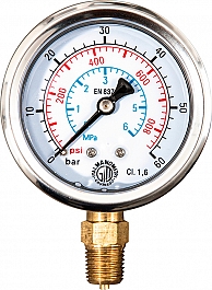 | 115045 | Манометр с точной шкалой, p ≤ 1,6 МПа / 16 бар / 232 фунт/кв. дюйм, для испытания под давлением и проверки герметичности трубопроводных систем и резервуаров до 1,6 МПа / 16 бар / 232 фунт/кв. дюйм. CL 1,0. |