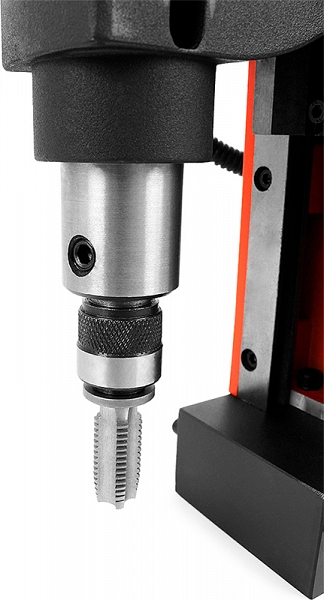 - При наличии специального патрона может нарезать резьбу диаметром до 20 мм: для нарезания резьбы необходимо использовать специальный адаптер (дополнительная опция!), в который устанавливается метчик