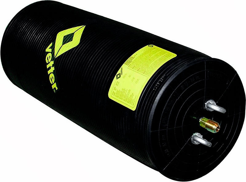 Маслостойкая химостойкая цилиндрическая пневмозаглушка для труб Vetter RDK 15/30 CR (Веттер РДК 15/30 ЦР) – многоразмерная пневматическая заглушка для перекрытия трубопроводов Ø 150 – 300 мм (6" – 12") в тех случаях, когда необходима повышенная устойчивость, например, против масел и топливных материалов на нефтеперегонных заводах в нефтепроводах или трубах, предполагающих контакт с маслом и консистентной смазкой.
