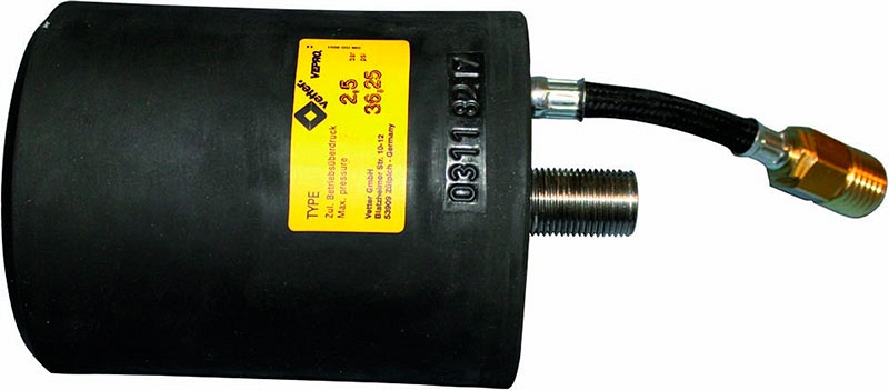 Многоразмерная цилиндрическая мини пневмозаглушка с каналом для труб Vetter PDK 10/15 (Веттер ПДК 10/15) – пневматическая мини заглушка для проведения испытаний, перекрытия и изменения трассы при различных работах по ремонту, очистке и обслуживанию трубопроводных сетей Ø 100 – 150 мм (4" – 6").