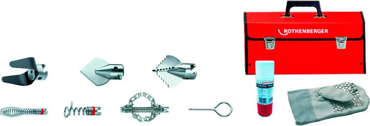 Набор насадок для прочистки труб Rothenberger L 16 мм (Ротенбергер Л 16 мм) предназначен для электрических прочистных машин R 550 / 600 / 650 / 750, а также других производителей.