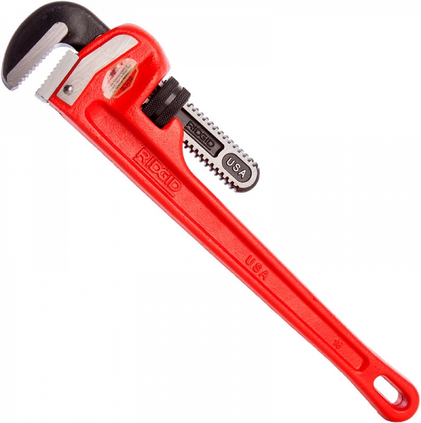 Прямой трубный ключ Ridgid Heavy Duty 18" (Риджид Хэви Дьюти 18") предназначен для больших нагрузок, известен во всем мире своей великолепной прочностью и эксплуатационной надежностью и завоевал признание профессионалов, работающих с трубами Ø до 65 мм (2 1/2").