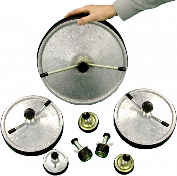 Стальные заглушки для труб Huntingdon Fusion Techniques PSP6115 (Хантингдон Фьюжин Текникс ПСП6115) – проходные металлические заглушки для труб Ø 110 – 125 мм, давлением до 0,7 бар (10 psi) для перекрытия трубопроводов и канализации при ремонте и сварке; гидроиспытаний; продувки при сварке труб в инертной среде; ремонта и монтажа труб и трубопроводов; обслуживания и ремонта воздуховодов; тестирования автомобильных радиаторов; предотвращения проникновения грязи, грызунов, насекомых.