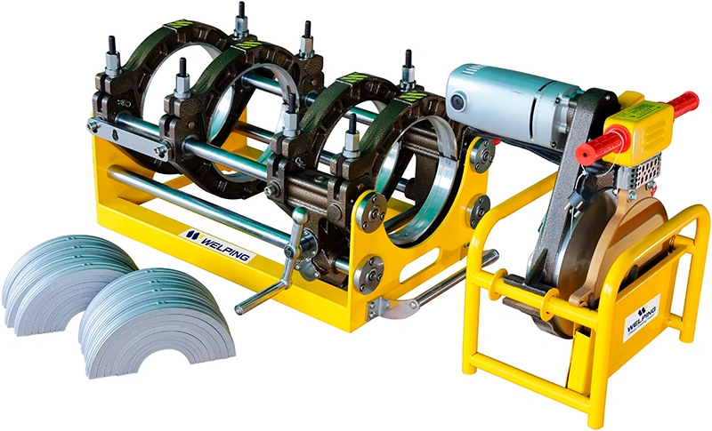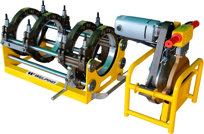 Стыковой сварочный аппарат Welping WP250C (Велпинг ВП250Ц) – механическая стыковая сварочная машина для сварки пластиковых (ПЭ (полиэтиленовых), ПП (полипропиленовых), ПВДФ (поливинилиденфторидовых) / PE, PP, PVDF) труб Ø 90, 110, 125, 140, 160, 180, 200, 225, 250 мм на стройплощадках при прокладке дренажных труб и водопроводных магистралей.