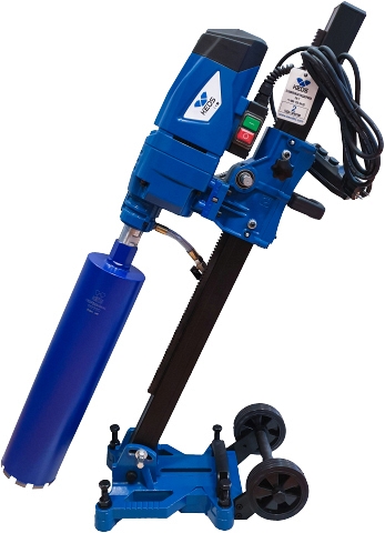 - Транспортировочные колеса позволяют без труда перемещать штатив с уже установленным мотором и коронкой по строительной площадке