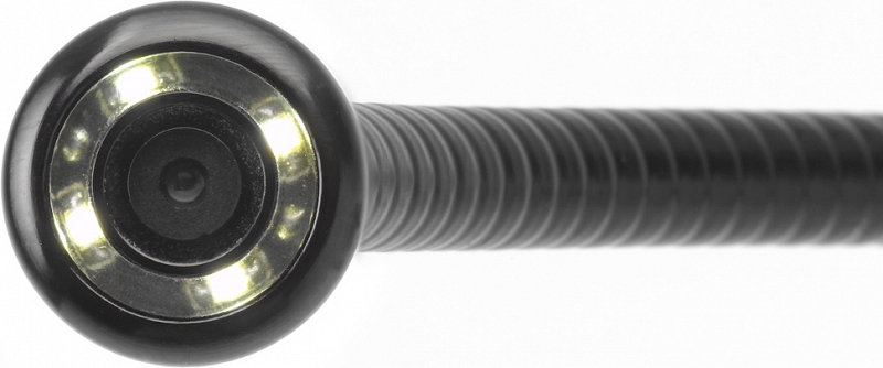 - 17 мм алюминиевая головка видеокамеры с 4-мя сверхъяркими светодиодами, обеспечивающими превосходное качество изображения на 2,4" цветном ЖК-дисплее для детальной видеодиагностики в труднодоступных местах